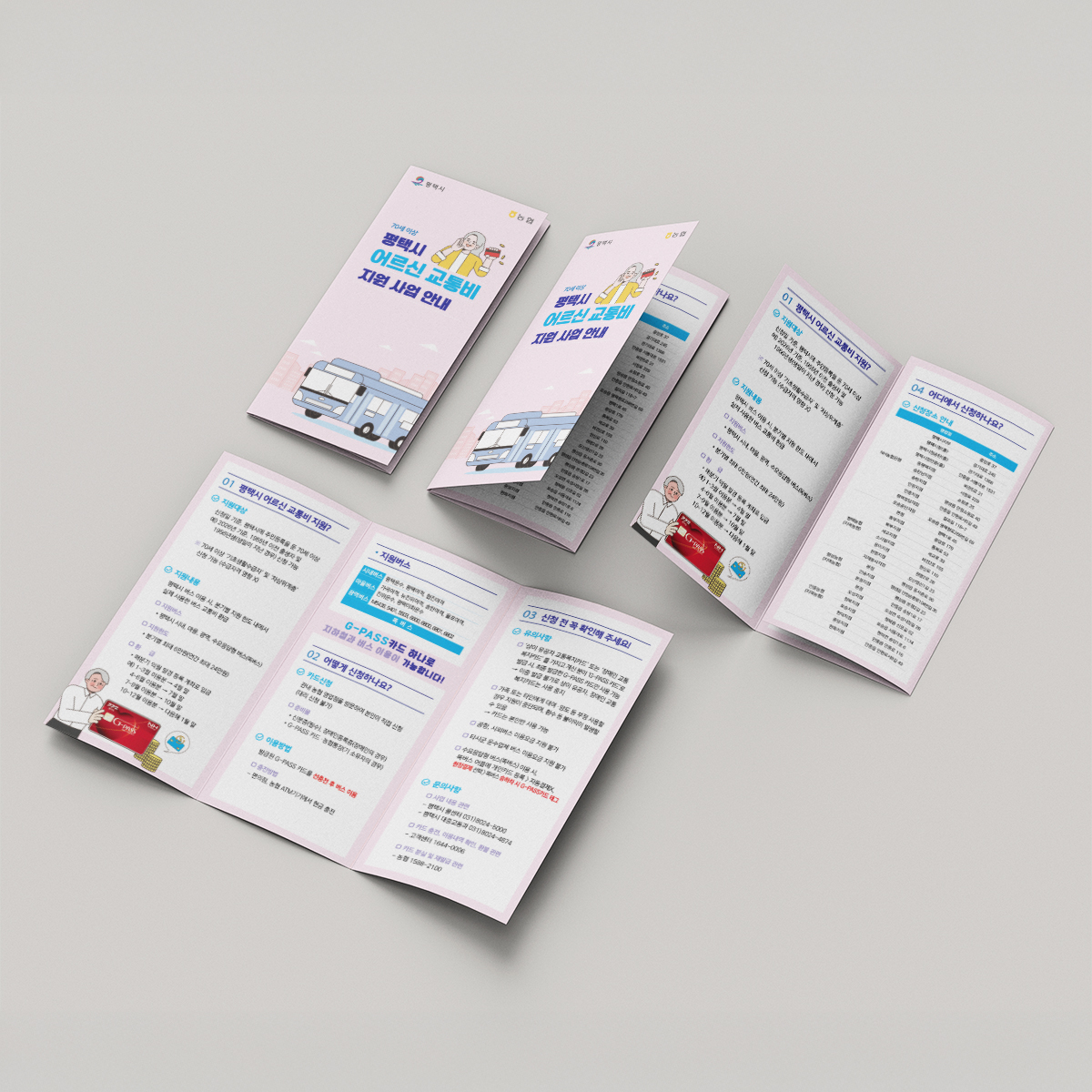 Client: 평택시청 어르신교통비지원사업 홍보용 3단 리플렛 사업 요약 내용 입력 4도 인쇄/A4 3단접지/200Art Services: Editorial Design Date: 2025. 12